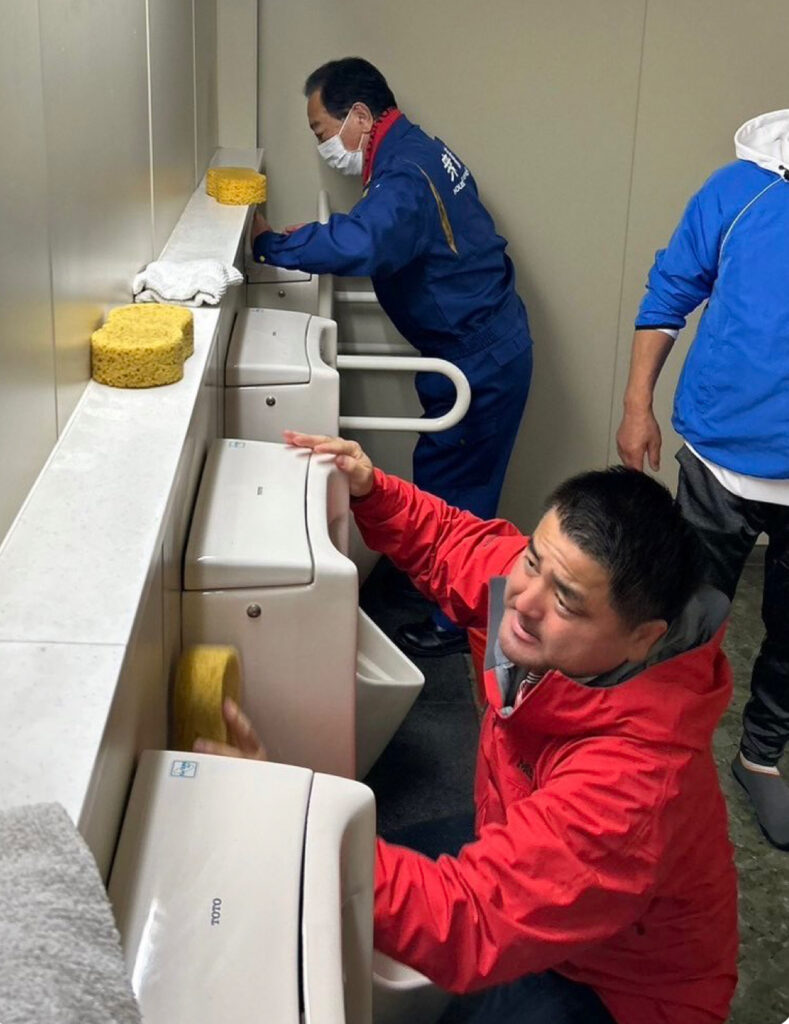 太栄志氏(衆院議員)「『国会掃除に学ぶ会』設立総会に参加。総会後に、野田元総理や参加者の皆さんとトイレを清掃。今後も実践します」