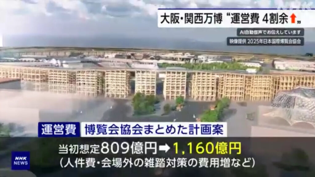 1: 少考さん ★ 2023/12/14(木) 19:15:46.80 ID:TG9z7xRZ9 大阪・関西万博 運営費1160億円の計画案 当初想定から4割余増 | NHK https://www3.nhk.or.jp/news/html/20231214/k10014288141000.html 2023年12月14日 16時26分 大阪・関西万博の実施主体の博覧会... -