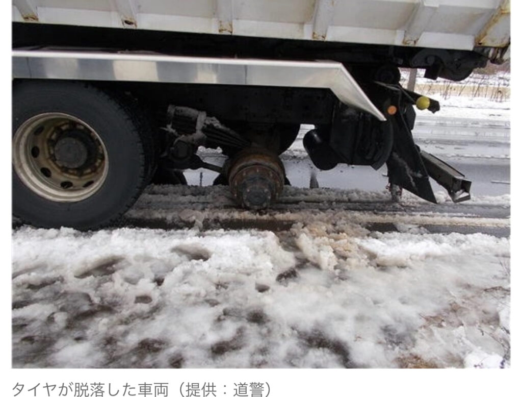 【北海道】またも左側タイヤが脱輪…国道走行中の大型車両から左後輪2本外れる…脱輪後も約500メートル走行「ガリガリ異音聞こえて止まった」ケガ人なし 北海道知内町