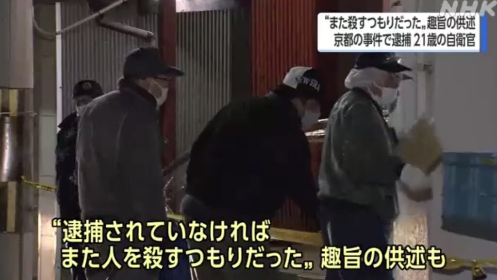 1: ばーど ★ 2023/12/11(月) 12:03:31.81 ID:fB44uWhl9 今月(12月)、京都市のマンションで80代の男性が刺されて殺害された事件で、10日に逮捕された21歳の自衛官が、「逮捕されていなければまた人を殺すつもりだった」という趣旨の供述をしてい... -