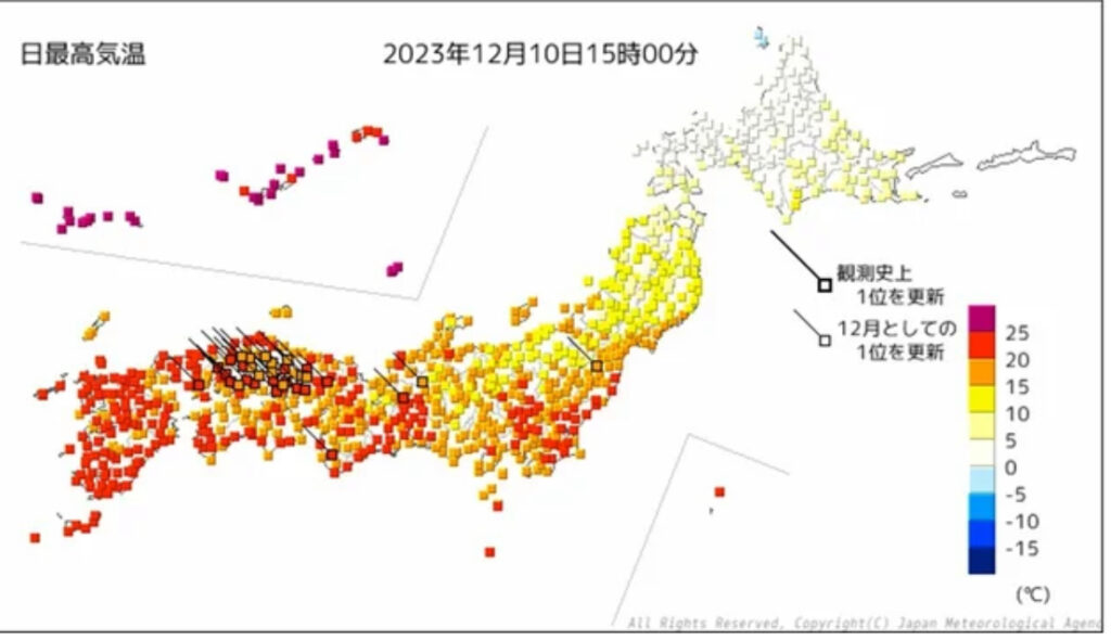 1: もん様(みかか) [ニダ] 2023/12/10(日) 17:52:04.48 ID:TIjgYDCK0● BE:421685208-2BP(4000) sssp://img.5ch.net/ico/syobo2.gif 10日(日)は西日本を中心に気温が上がり、広い範囲で20℃以上の“季節外れの暖かさ”となりました。全国のアメダス観測点のう... -