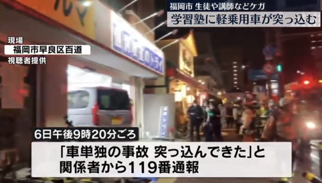 【事故】学習塾に軽乗用車が突っ込む 生徒や講師などケガ 福岡市