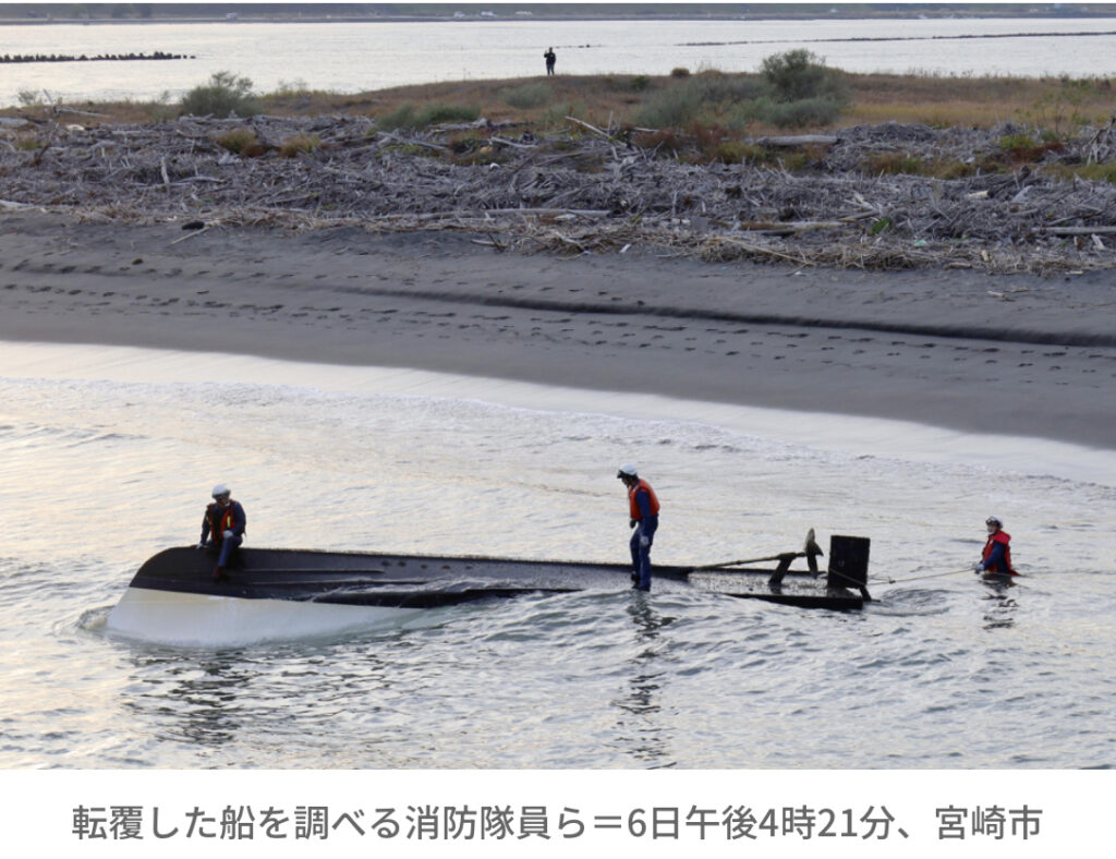 1: 蚤の市 ★ 2023/12/06(水) 23:02:20.28 ID:nahyfY1S9 6日午後3時5分ごろ、宮崎市の大淀川河口付近で漁船が転覆したと118番があった。乗っていた男性6人は全員水中に転落し、救助後病院に搬送されたが、いずれも宮崎市に住む船長橋口孝二さん(55)と池... -