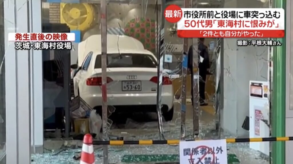 【茨城】「東海村に恨みがあった」日立市役所前と東海村役場に2台の車で突っ込んだ男(53)逮捕 日立では高齢の同乗者