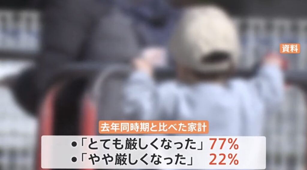 1: ちょる ★ 2023/12/06(水) 10:38:01.78 ID:??? TID:choru 困窮する子育て家庭を支援するNPO法人が行ったアンケート調査で、物価高の影響を受け去年よりも家計が「とても厳しくなった」と答えた親がおよそ8割に上ることがわかりました。 このアンケートは... -
