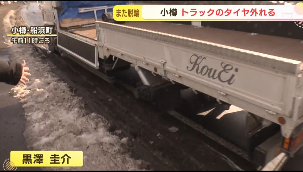 1: ばーど ★ 2023/12/06(水) 08:36:55.80 ID:Xjd+1W0r9 小樽市でも脱輪事故です。大型トラックから外れたタイヤが、対向車線を走る別のトラックに衝突しました。 黒澤圭介記者:「大型トラックの左後輪部分のタイヤが2本外れています。回収されたタイヤが... -