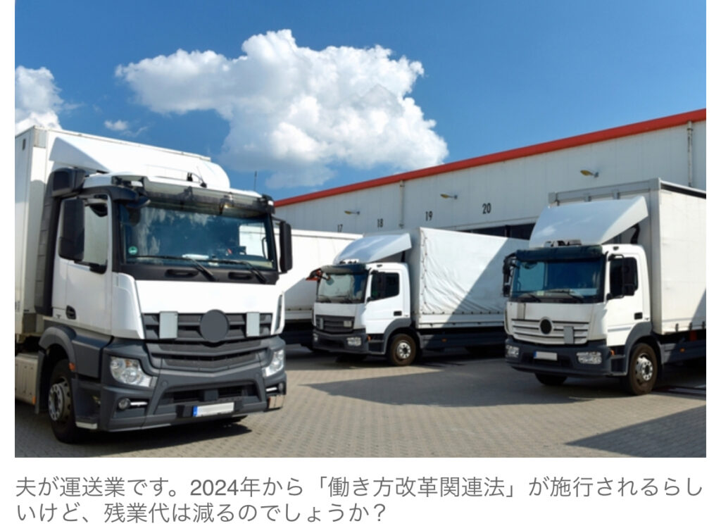 【一億総活躍社会】夫が運送業です。2024年から「働き方改革関連法」が施行されるらしいけど、残業代は減るのでしょうか?