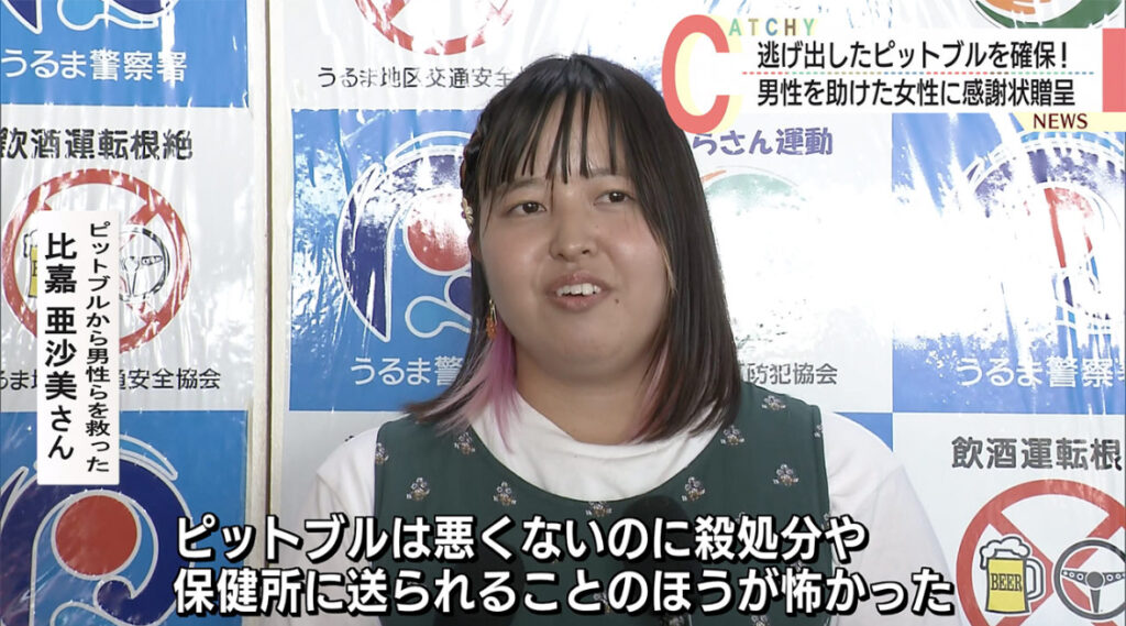 【お手柄】ピットブルに追われていた高齢男性救う 25歳女性に感謝状 沖縄