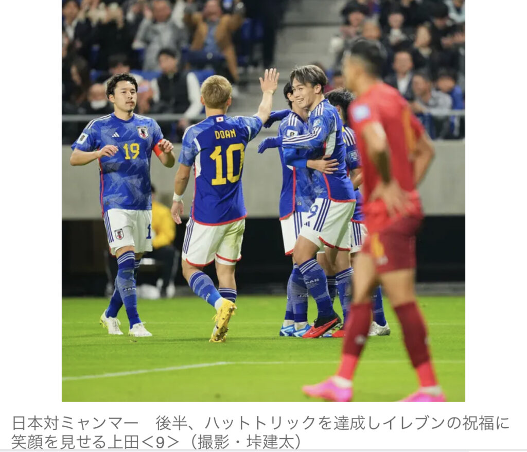 【サッカー】森保ジャパン、26年W杯に向け初戦ミャンマーに大勝 上田綺世ハットトリック!