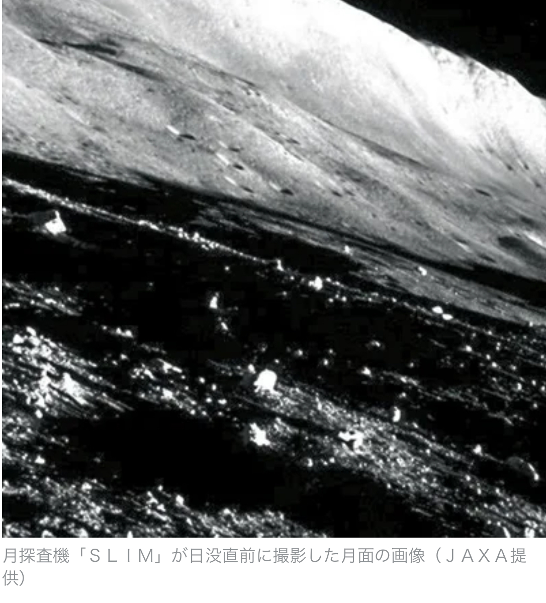 太陽電池が発電できない夜を迎えたためで、SLIMが日没直前に撮影した月面の画像も新たに公開した。