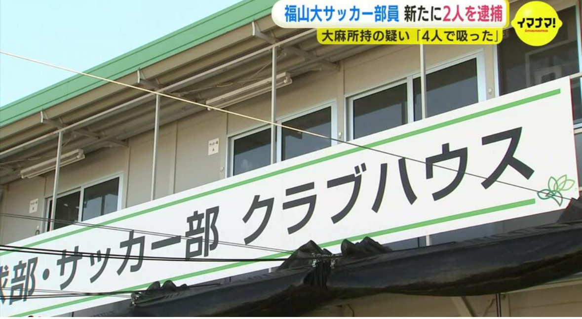 https://newsdig.tbs.co.jp/articles/-/973268広島県福山市内の路上で大麻を所持したとして、福山大学サッカー部員の男2人が新たに逮捕されました。