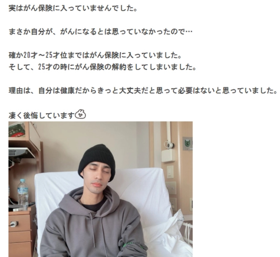 その後の投稿では、入院するにあたって病院側から説明された医療費について言及。「高額医療制度になるのでもちろん申請はしました。でも、改めて費用をみると…高い! もちろん健康保険に入っていても高いです… 退院した後はどのぐらいの金額になるか、正直怖いです…」と案じ、「僕は、これから一生飲む高い薬や、定期的な検査もあります。退院したら金銭的負担が終わりなわけじゃないので…。辛いです」とつづった。