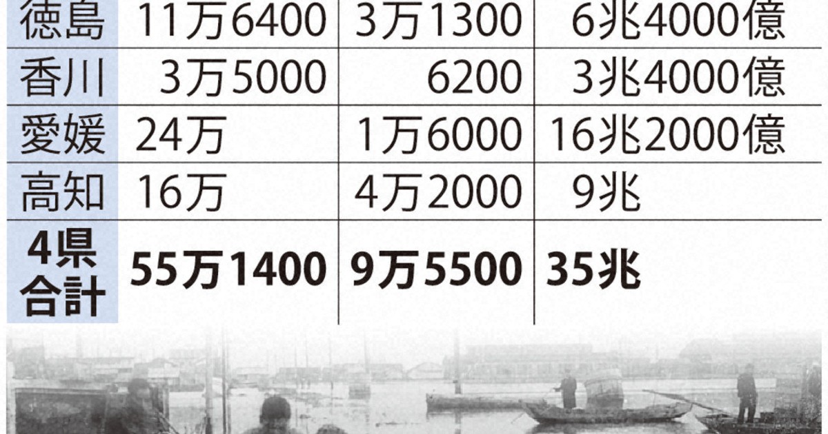 1月に発生した能登半島地震を機に、四国でも南海トラフ地震への警戒が強まっている。最大クラス(マグニチュード9・0、震度7)が起きた場合、四国4県を合わせた現在の最大被害想定では死者数が9万5500人にのぼり、発生翌日の避難者数は100万人を超える。四国4県を合わせた現在の最大被害想定では死者数が9万5500人にのぼり、発生翌日の避難者数は100万人を超える。