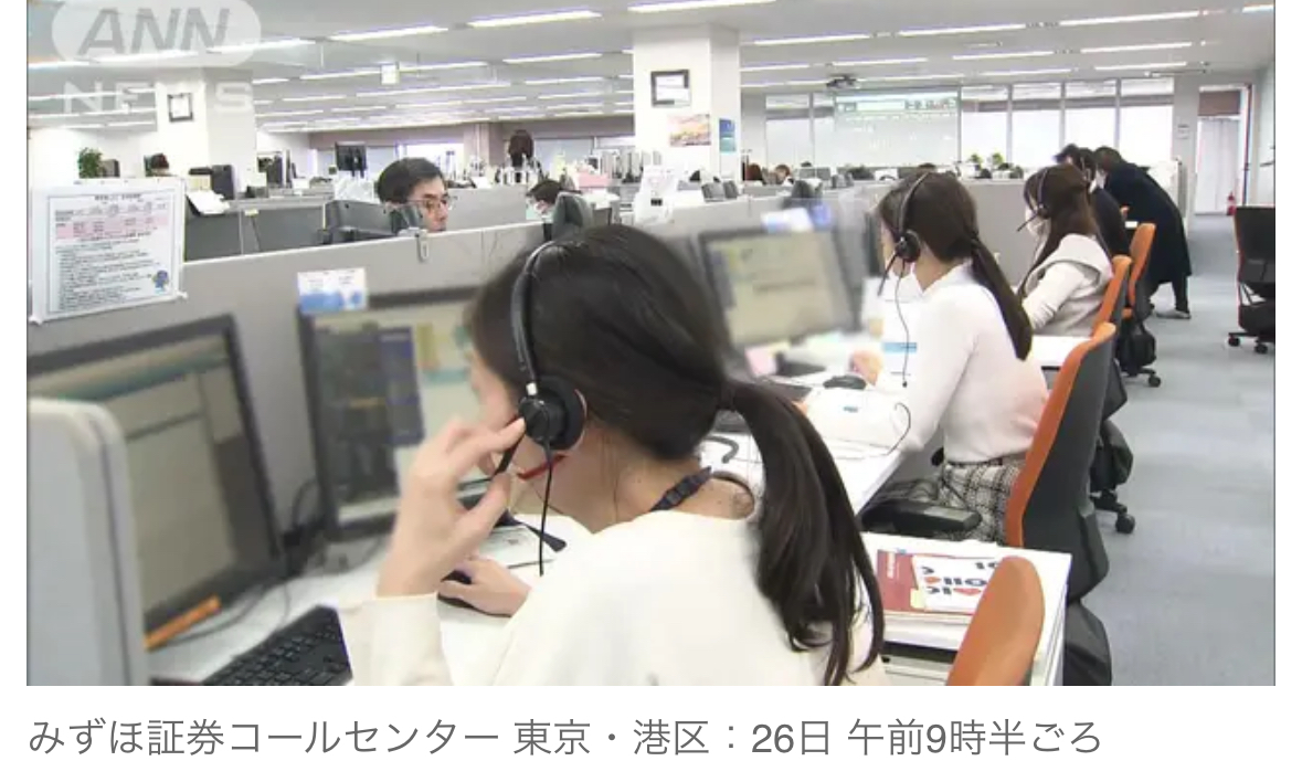 東京都内にあるみずほ証券のコールセンターには、東証での取引開始前から投資の相談や注文に関する問い合わせが普段より多く寄せられています。