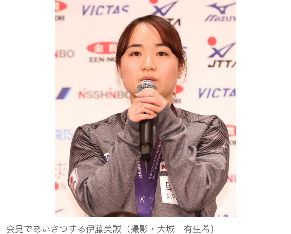 16年リオ五輪で補欠の平野美宇、21年東京で補欠の早田ひなには感謝し、世界選手権後にはファンらから「パリでもサポートしてほしい」というメッセージがあったことも明かしていた。
