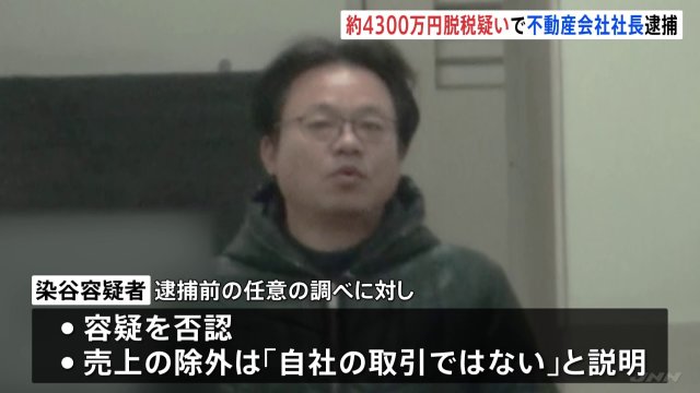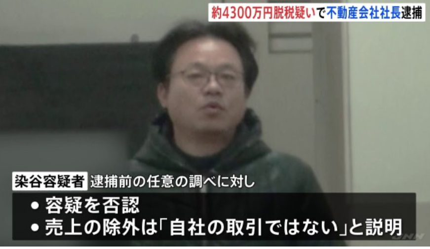 染谷容疑者はおととし4月までの1年間に架空の外注費を計上したり土地の売買で得た収入を売上から除いたりして、およそ1億7400万円の所得を隠し、法人税4300万円ほどを脱税した疑いがもたれています。