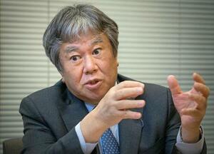 「ディープステート」について、インタビューで「実質的な決定権を持っている」と話す、立憲民主党の原口一博元総務相=2024年1月、京・永田町の衆院議員会館