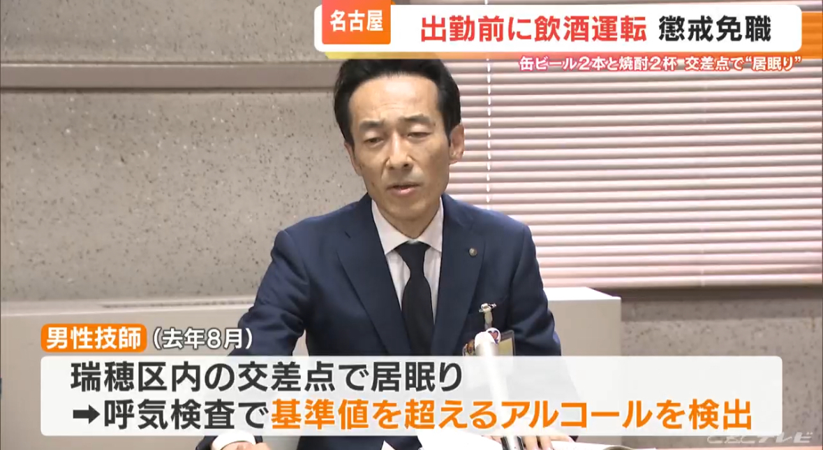 出勤前に酒を飲んで車を運転したとして、名古屋市の男性職員が懲戒免職となりました。