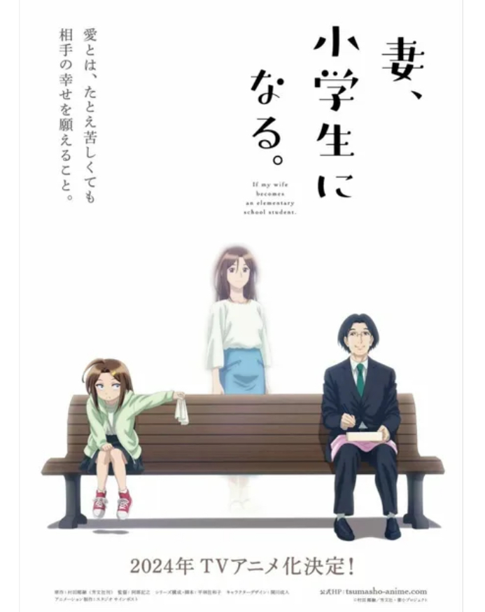累計部数300万部を突破した芳文社刊のマンガ作品「妻、小学生になる。」について、昨年発表されていたTVアニメ化の続報として、2024年内に放送される予定であることも発表された。ティザービジュアル、スタッフ情報、原作者と監督からのコメントも明らかになった。