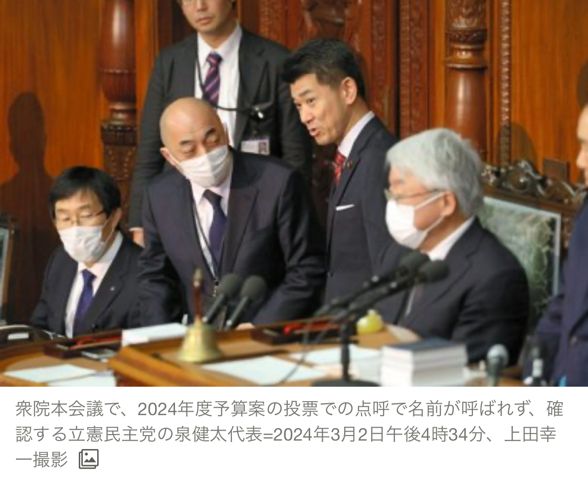 対応を協議していた泉健太代表は「野党の結束を優先する」。抵抗戦術を放棄し、2日中の予算案の採決容認に転じた。