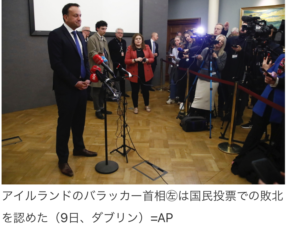 アイルランド「女性は家庭優先」条文維持 憲法改正否決 – 日本経済新聞