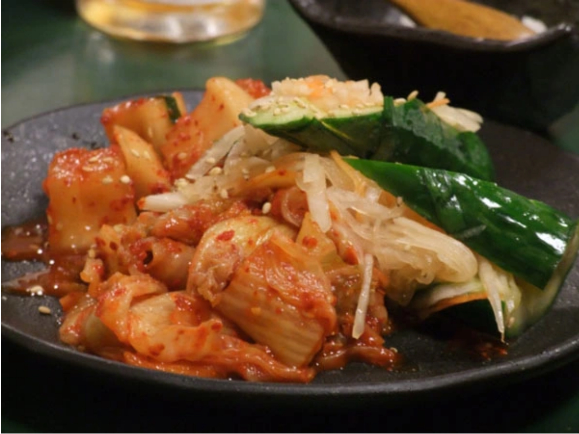 韓国料理に欠かせないキムチは、白菜や大根、キュウリなどの野菜を主原材料として、粉唐辛子、ニンニク、魚介類の塩辛、果実のスライスなどを加え、冷暗所などで発酵させて作る、発酵食品のひとつです。