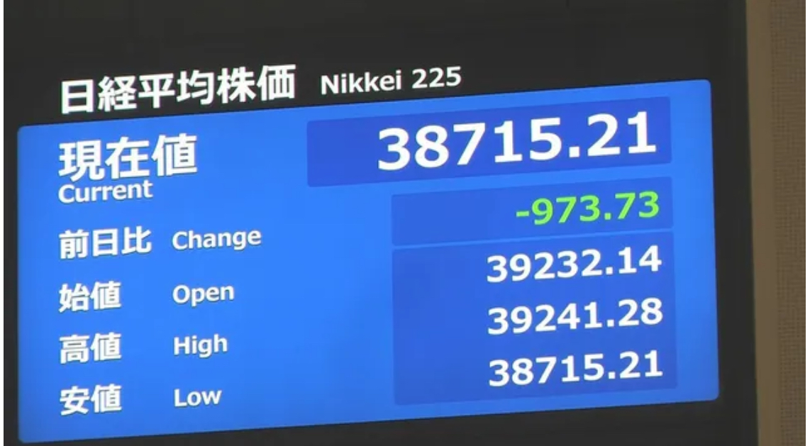 きょうの東京株式市場で日経平均株価は一時900円以上、値下がりし、3万9000円を割り込んでいます。先週末、アメリカの半導体大手・エヌビディアが7営業日ぶりに値下がりした流れを引き継いで、日本市場でも半導体関連株に売り注文が膨らんでいます。
