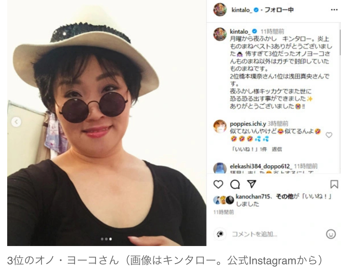 お笑いタレントのキンタロー。さんが、3月11日にInstagramを更新。日本テレビ系バラエティー「月曜から夜ふかし」で披露した“世間を騒がせた”モノマネを明かしています。