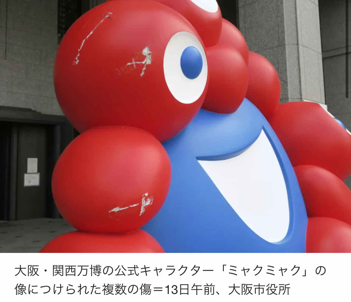 引用元: ・万博「ミャクミャク」の像に傷 大阪市役所前に設置 [少考さん★]