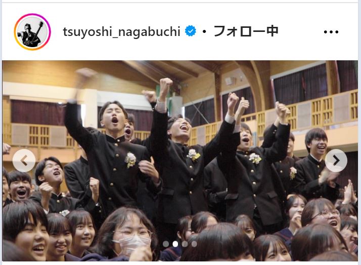 シンガー・ソングライター長渕剛(67)が13日までにインスタグラムを更新。母校の鹿児島市立甲南中学校の卒業式でシークレットライブを行ったことを報告、最新ショットを公開した。