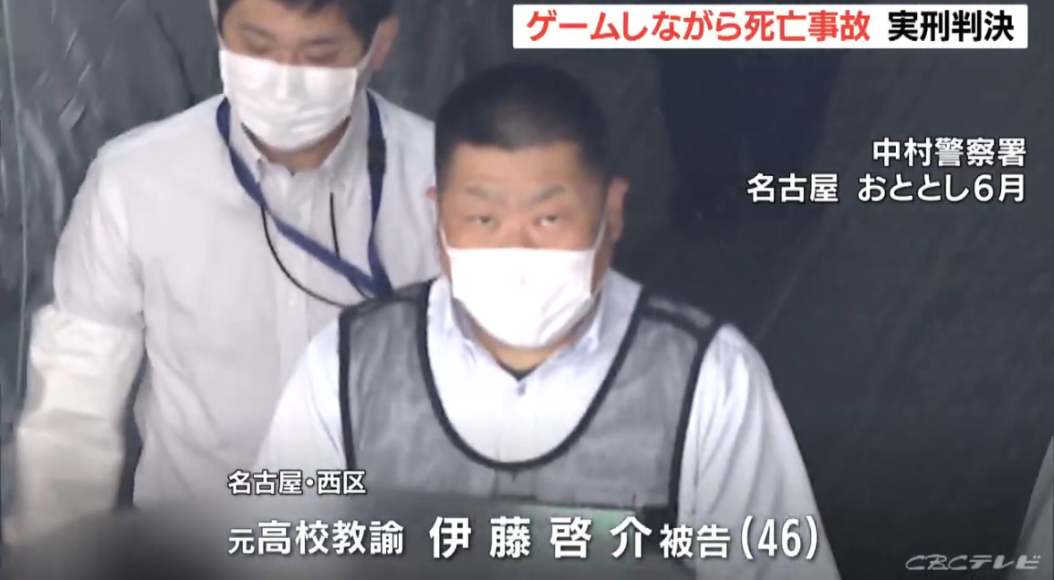 判決などによりますと、名古屋市西区に住む県立高校の元教諭、伊藤啓介被告46歳はおととし5月、西区児玉二丁目の交差点で、スマートフォンのゲーム「ドラクエウォーク」をしながら乗用車を運転し、自転車に乗っていた中村区の会社員・高貝真也さん、当時55歳をはねて死亡させた過失運転致死の罪に問われています。