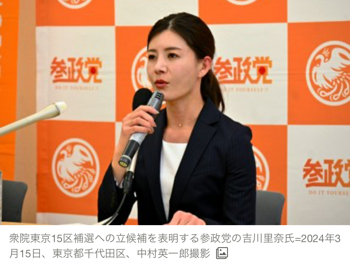 参政党、衆院東京15区補選に新顔・吉川氏擁立へ [春の衆院補選2024] [東京の政治] [東京都]:朝日新聞