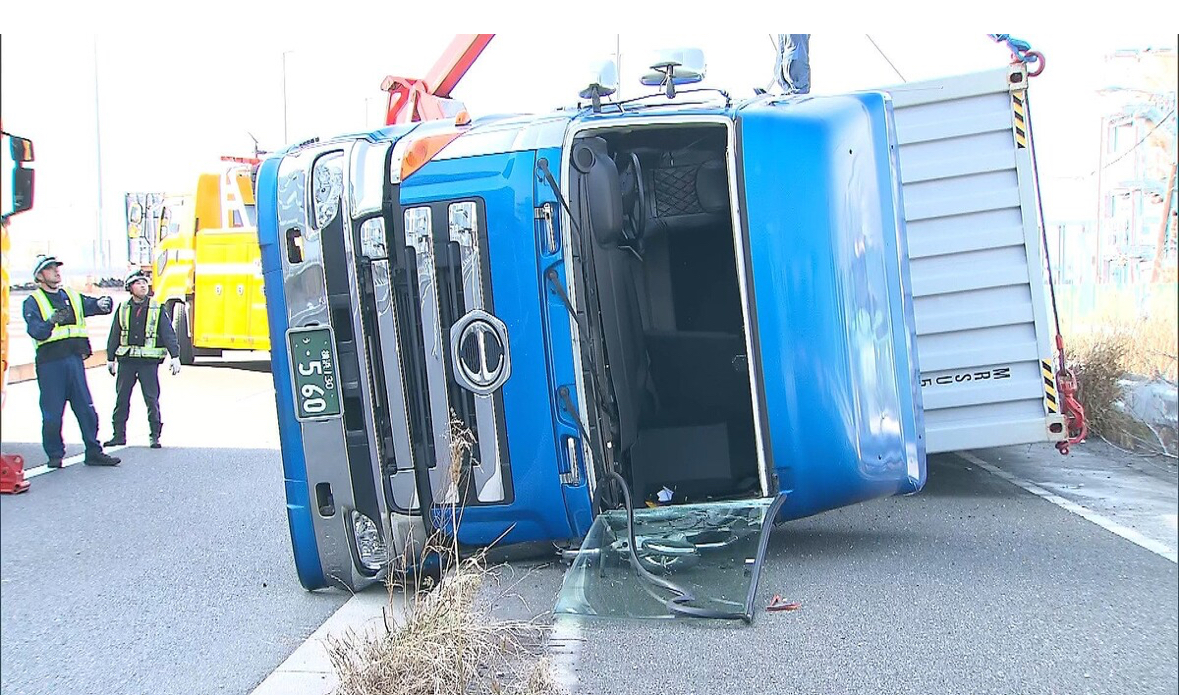 午前11時半ごろ、横浜市中区の南本牧ふ頭で「トレーラーが横転した」と110番通報があった。警察によると、大型トレーラーがT字路を曲がりきれずに横転したという。