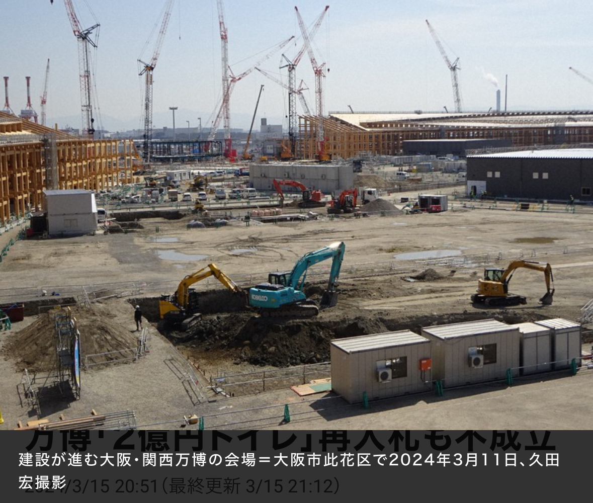 引用元: ・万博「2億円トイレ」再入札も不成立 工法の見直し含め協議へ [少考さん★]