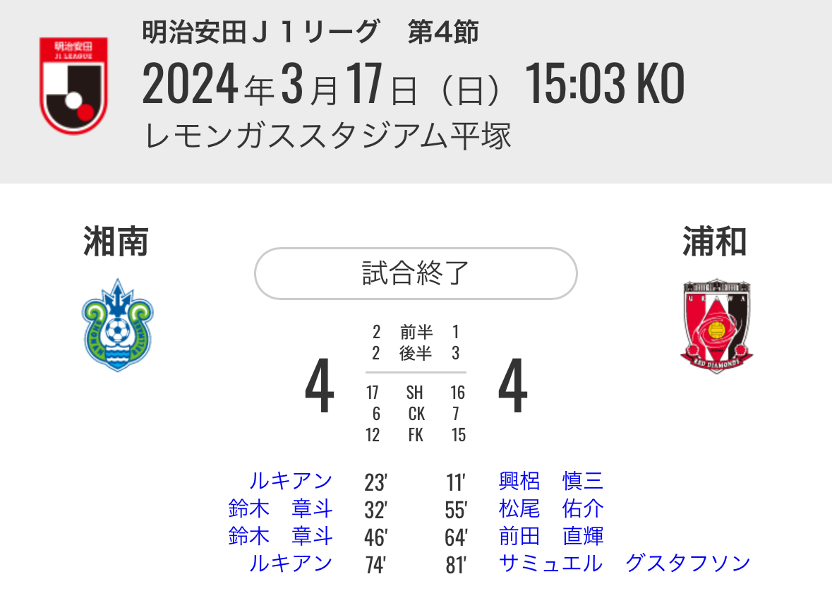 明治安田J1リーグでは17日、第4節の湘南ベルマーレvs浦和レッズが行われた。