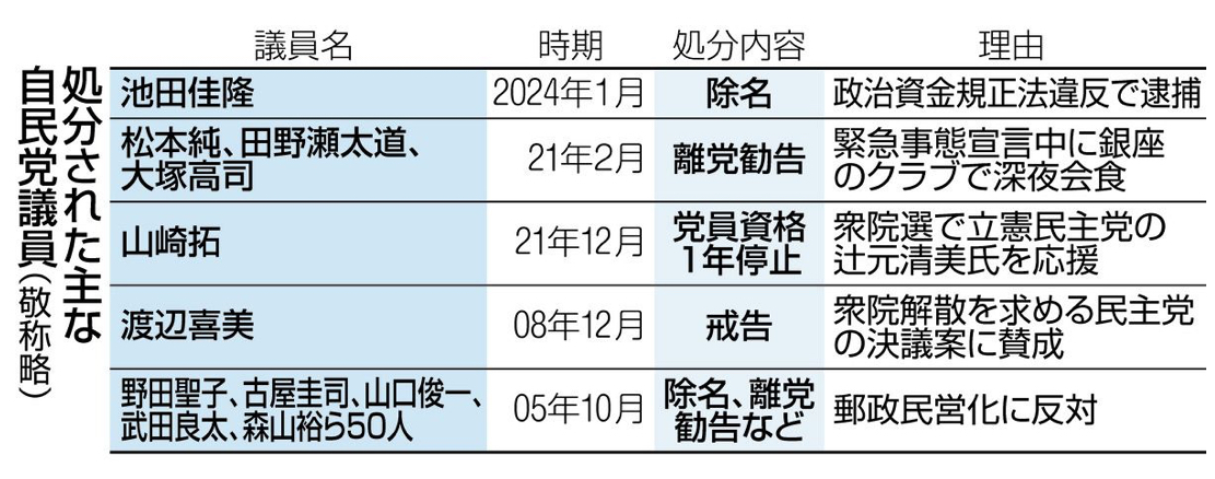 党幹部は「党大会前に処分したかったが、首相が『政治倫理審査会を見てから』と言ってしまった」と党内の事情に言及。中堅は「もっと早く派閥幹部を政倫審に出席させていれば今ごろ処分は済んでいた。首相に指導力が感じられない」と不満をあらわにした。(大野暢子、三輪喜人)