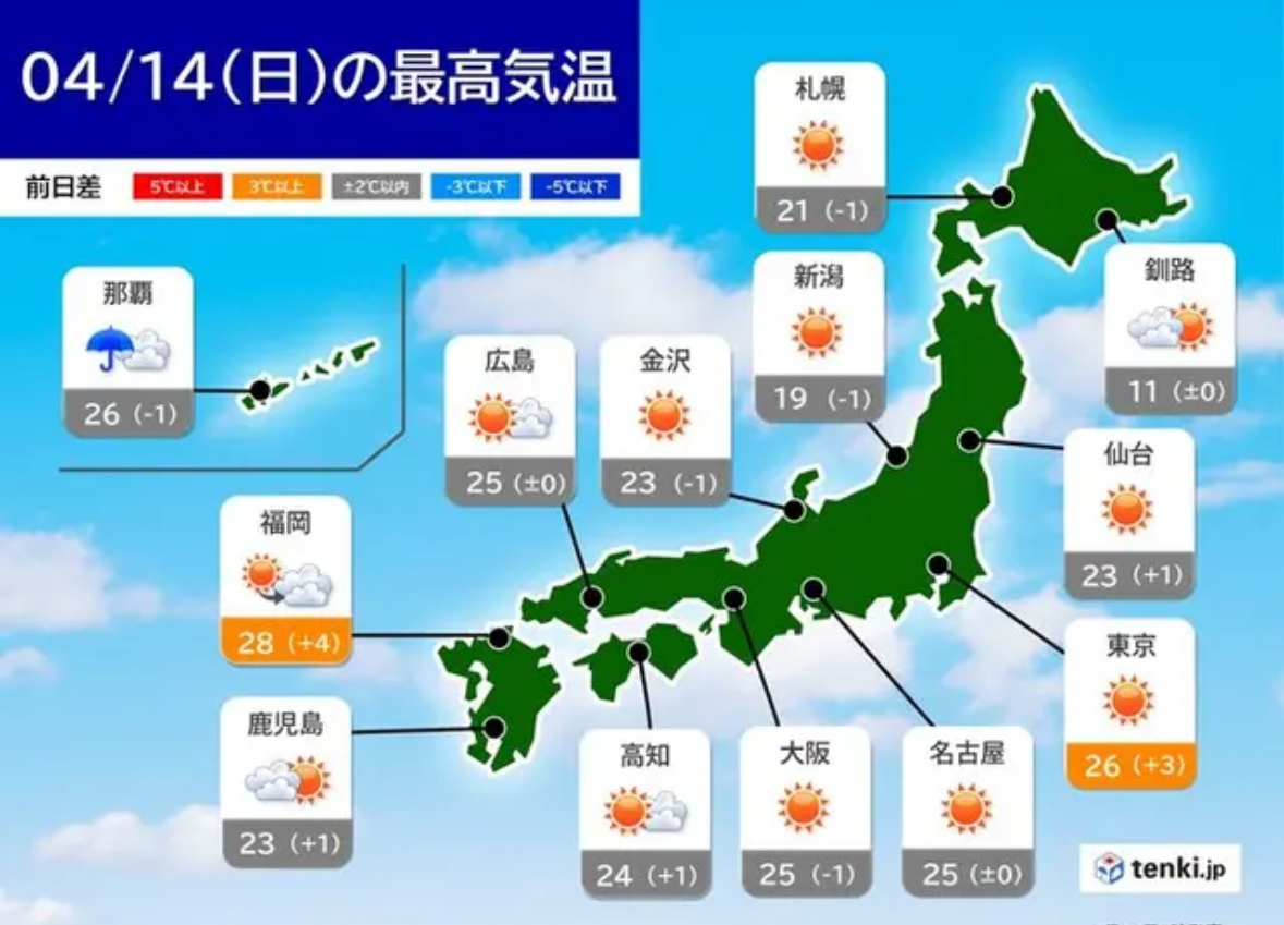 【天気】今日14日 気温上昇 九州の一部は30℃に迫る 東北も所々で夏日
