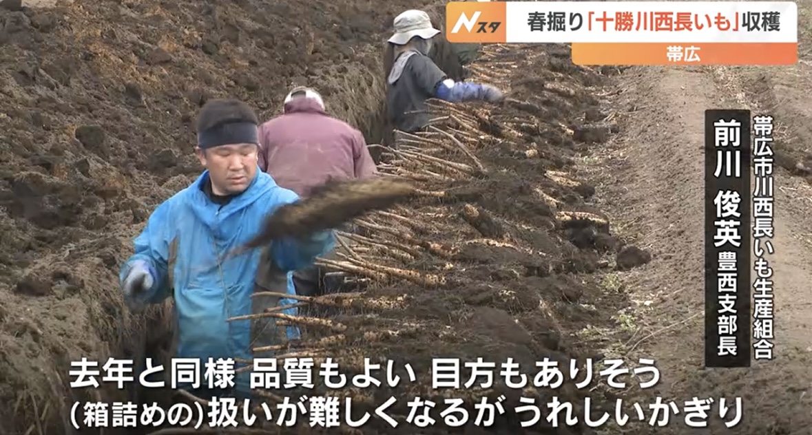 「長くて太く、申し分ない」春掘り『十勝川西長いも』収穫さかん“1本1本折れないよう丁寧に
