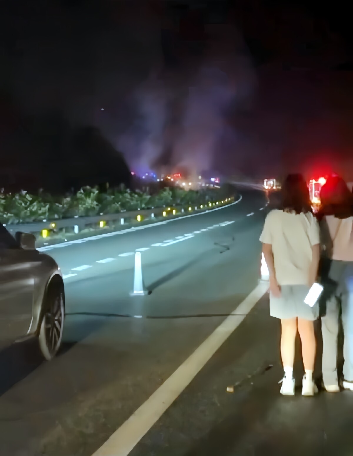 現場にいた人たちは、「数台の車両が落ちていき、爆発音のような物を聞いた。涙が出た」「前方の車が異変に気付いて止まってくれたので(後方の自分たちも止まることができて)良かった」「車に乗っていた(自分以外の)7人は寝ていたが、大きな音でみんな目を覚ました。コントロールを失い、思わず叫び声を上げた。車を止めて確認したら後方に4~5メートルの大きな穴が開いていた」などと話した。