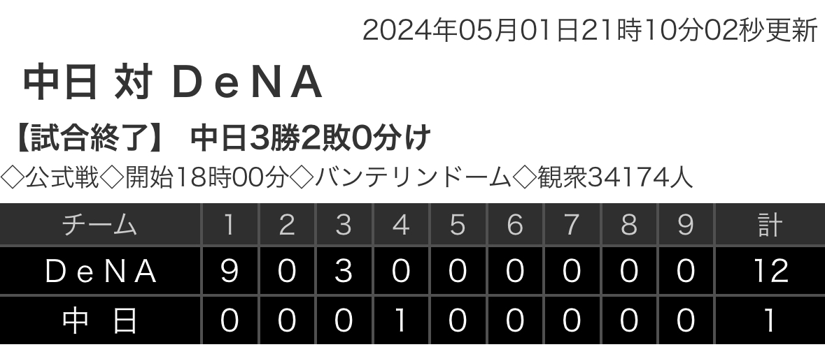 試合結果:nikkansports.com/yahooスポナビ野球