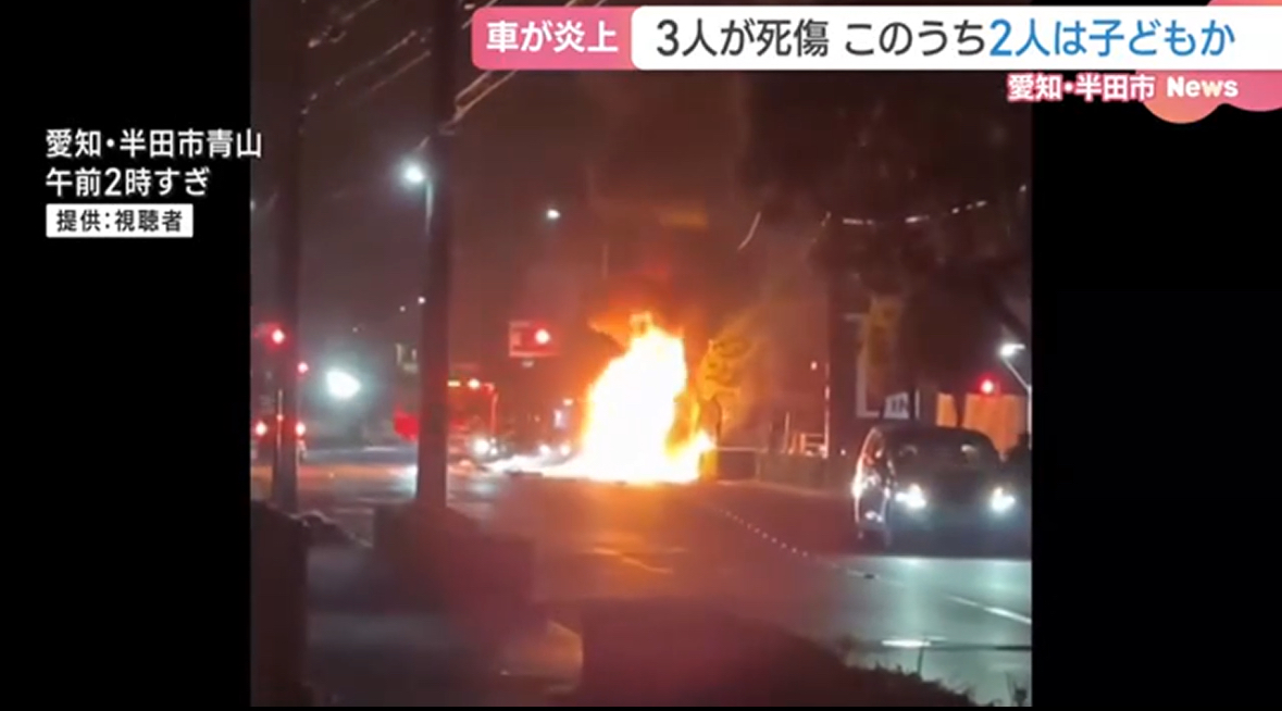 3日未明、愛知県半田市で車が燃え、乗っていた3人が死傷しました。