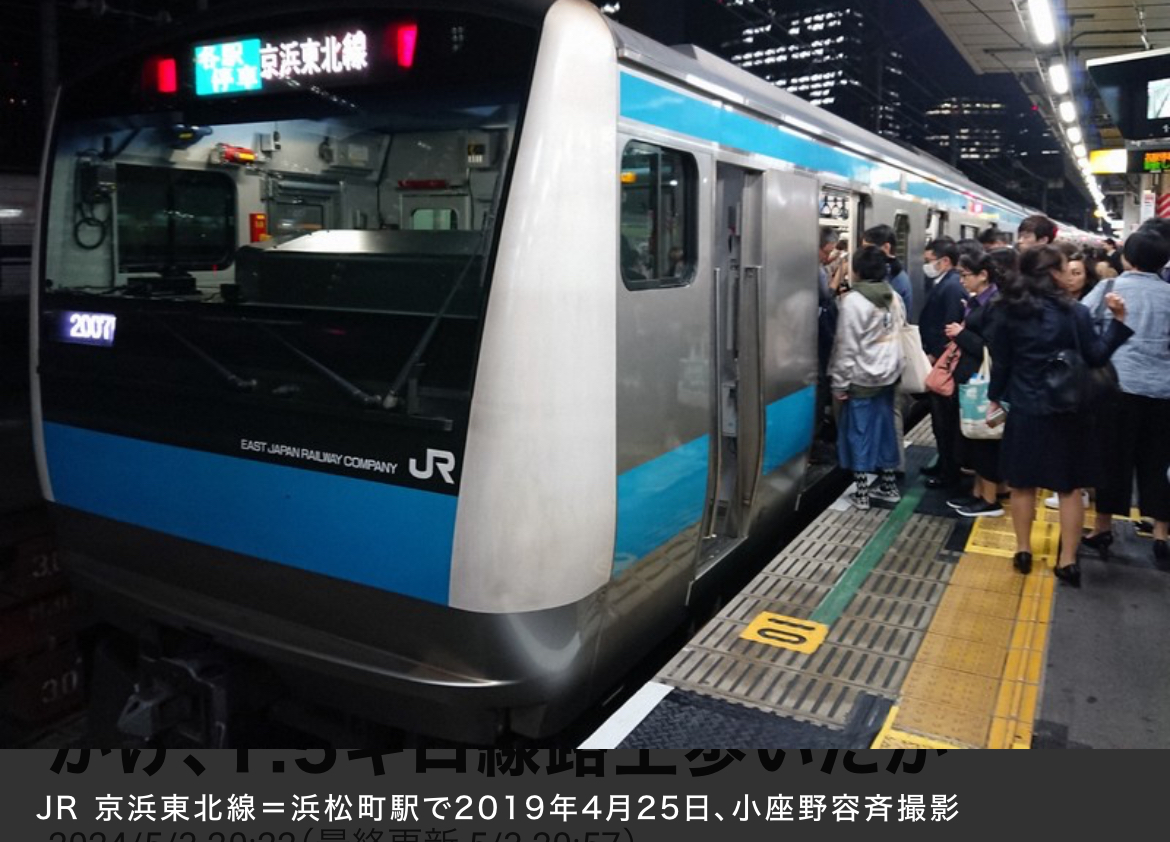 この騒ぎのため京浜東北線や山手線、東海道線下り線などで最大約25分の遅れが発生した。【大野友嘉子】
