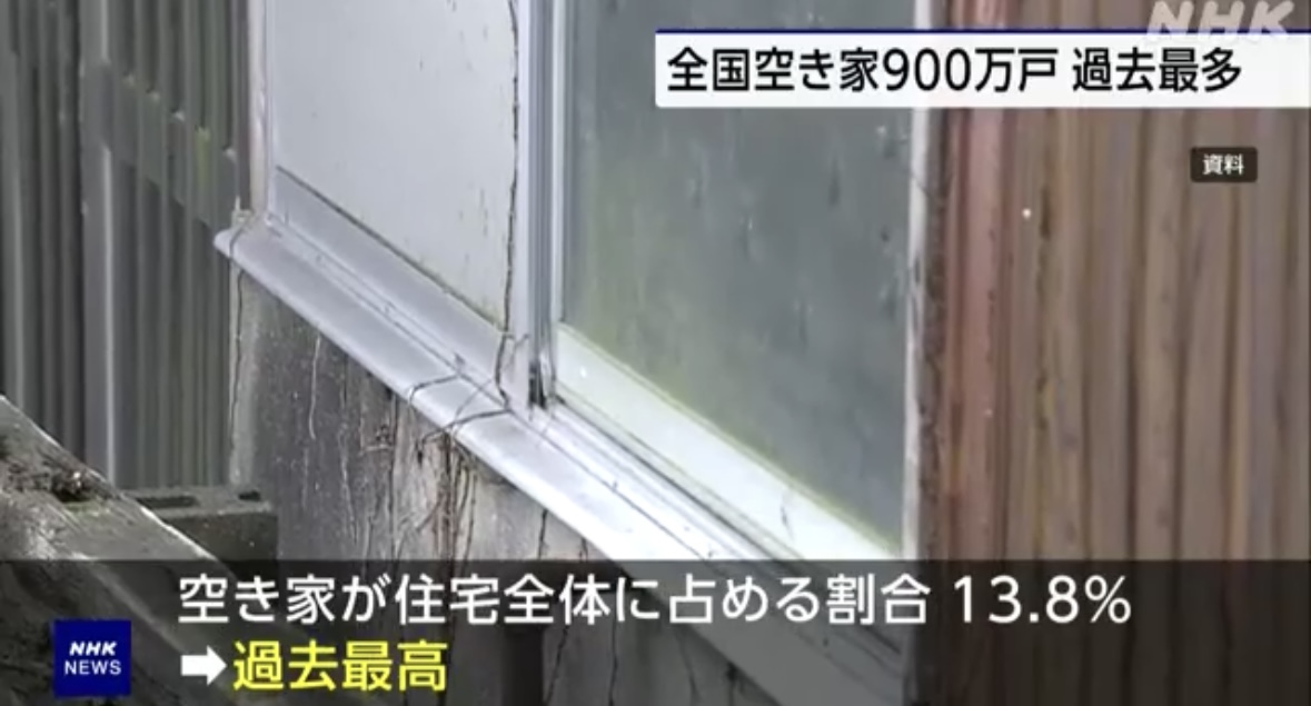全国の空き家の数は住宅全体の13.8%にあたる900万戸となり、人口減少や高齢化などを背景に過去最多となったことが総務省の調査でわかりました。総務省は、住宅の数や状況などを調べるため、5年に一度「住宅・土地統計調査」を行っていて、2023年10月1日現在の調査結果を公表しました。