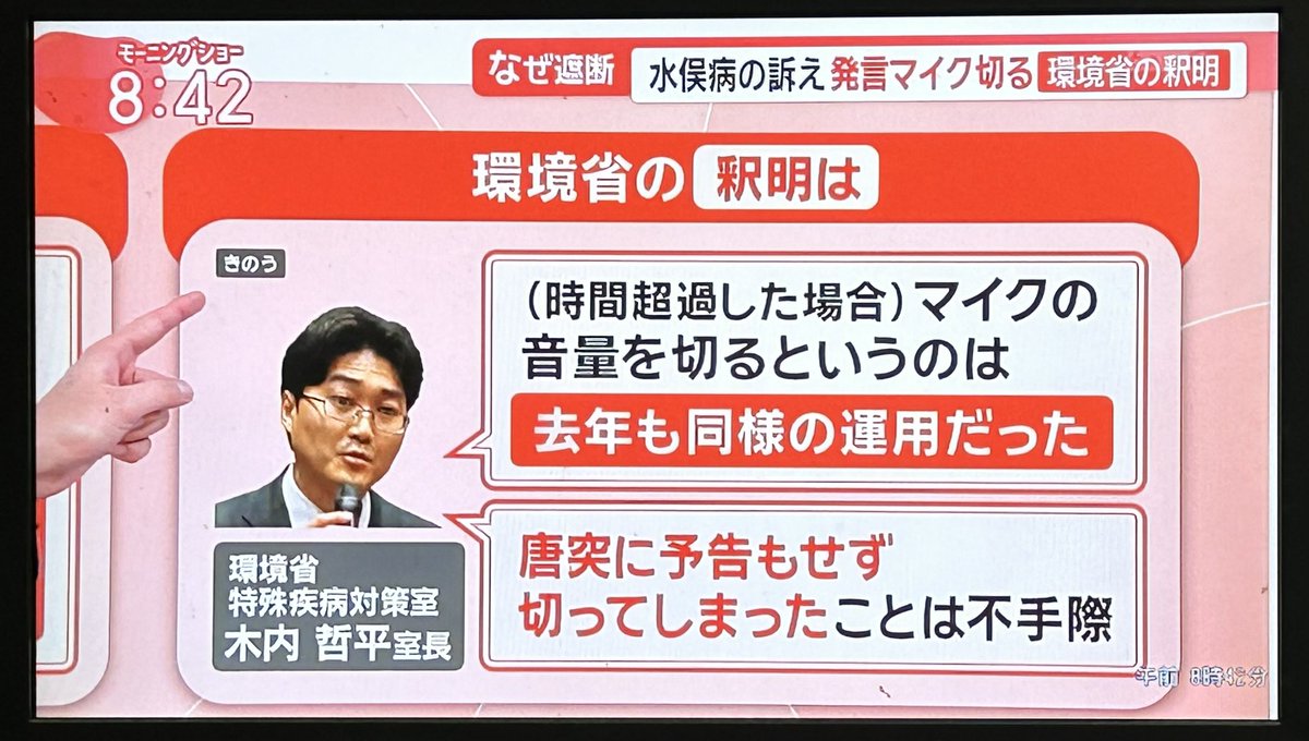 この問題は、水俣病の患者や被害者らの団体と伊藤環境大臣との懇談会で、環境省の職員が団体側が発言している最中に持ち時間を過ぎたため、途中で遮った上、マイクの音を切ったものです。