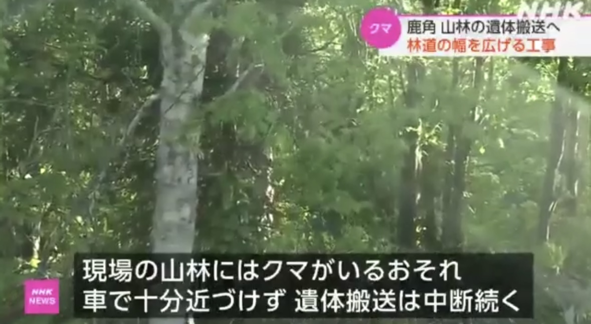警察などは、山林にはクマがいるおそれがあるうえ、現場が斜面になっていて車では十分に近づけないことから安全の確保が難しいとして、遺体の搬送を中断しています。