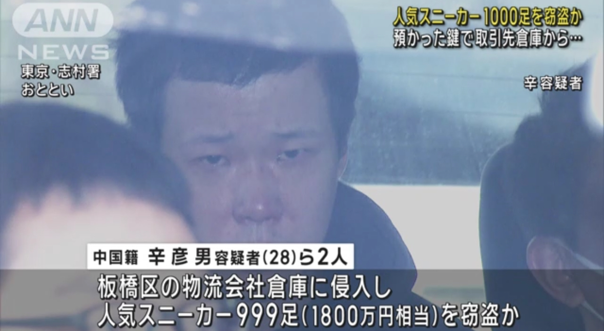 中国籍の会社役員・辛彦男容疑者(28)ら2人は1月、板橋区にある取引先の物流会社の倉庫に侵入し、人気ブランドのスニーカー999足、1800万円相当を盗んだ疑いが持たれています。
