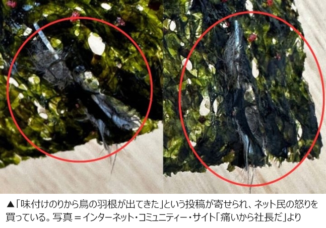 これは23日、自営業者向けのインターネット・コミュニティー・サイト「痛いから社長だ」に「味付けのりから異物」