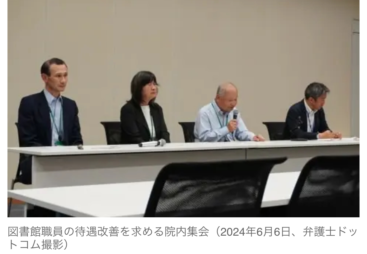 弁護士ドットコムニュース全国の図書館で非正規雇用の職員が増えていることを受け、日本図書館協会(日図協)など図書館関係7団体や識者らが6月5日、待遇改善をうったえる集会を東京・永田町の衆議院第2議員会館で開催した。集会には、超党派の学校図書館議員連盟の国会議員らも参加した。