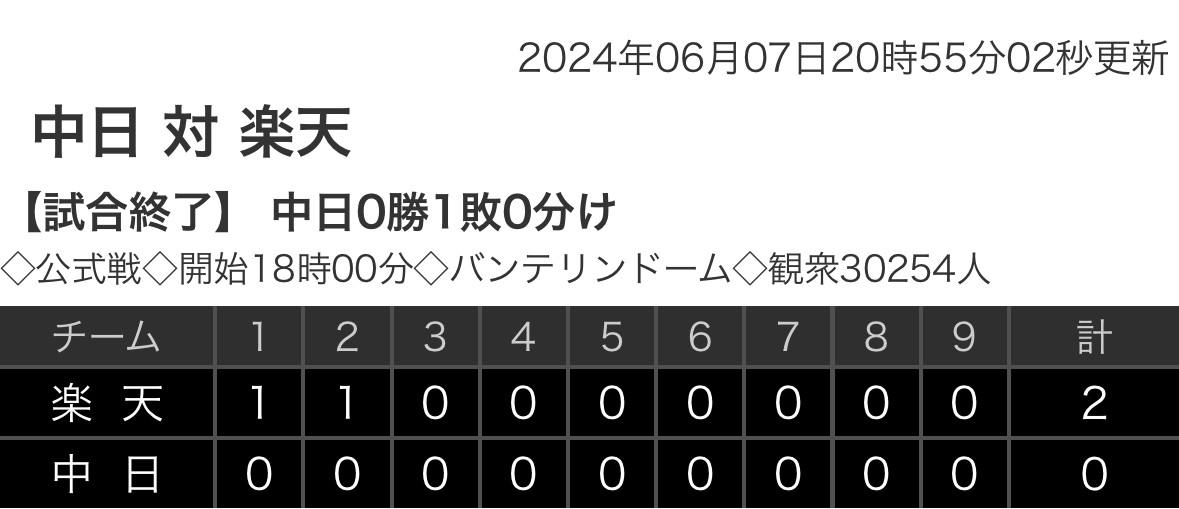 試合結果:nikkansports.com/yahooスポナビ野球