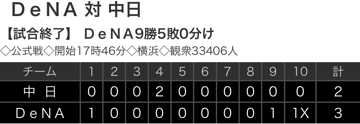 DeNA 1 0 0 0 0 0 0 0 1 1x |3